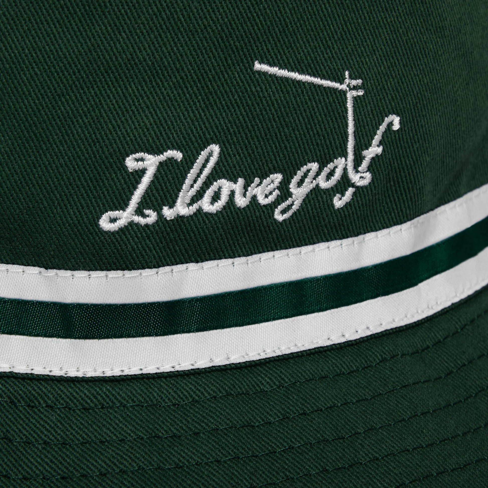 - Green side with embroidered “I love golf” logo
